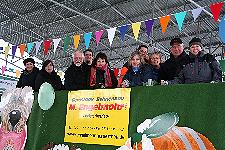 Knapp 30 Ehrenamtliche und Mitarbeiter säumten einen fast professionell gestalteten LKW. Wagen, Illustrationen, Aufbauten, Farben und Wurfmaterialien wurden von Firmen und Privatpersonen gesponsert. Vielen Dank an dieser Stelle an die Firmen Engelmohr, Jörg Küper, Brillux und Illustratorin Eva Dillkoetter. Und nicht zu vergessen, an alle Ehrenamtlichen, die beim Aufbau und am Veranstaltungstag selber involviert waren. Die Umsetzung der Vorlagen und der Aufbau des Wagens erfolgte mit viel Engagement durch Ehrenamtliche und Mitarbeiter.
