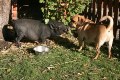 Anbei ein paar Fotos. Wir können froh sein, daß Paul nicht genau weiß, daß er ein Hund ist. Die Beiden gehen ganz toll miteinander um, unter mißbilligendem Grunzen der Dicken. Das wird schon!