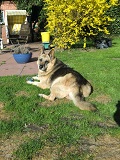 wie versprochen melde ich mich einmal wieder. Ich laufe bereits im Garten, Hof und Werkstatt ohne Leine und unbeobachtet rum. Könnte jeder Zeit stiften gehen ... mach ich aber nicht, bin ja nicht blöd !