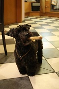 Nach wie vor ist sie unsagbar verfressen, wie sie sich seinerzeit sicherlich auch schon im Tierheim gezeigt hatte - da kommt ganz klar das Spaniel-Gen durch. ;) Vor allem sollte man bei dieser gewieften Hündin aufpassen, dass sie sich nichts Unbeaufsichtigtes vom Tisch holt - sonst wäre am Ende glatt das Mitagessen weg. =)