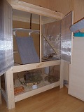 endlich haben wir Fotos gemacht. Morgen leben Princess und Tammy 14 Tage bei uns. Nachdem wir nur einen normalen Käfig (1 x 0,80 m) hatten und die Tiere doch nicht so viel Platz, haben wir etwas größeres gebaut. Die Tiere haben jetzt eine Fläche von 1,5 x 2 m und fühlen sich pudelwohl. Tammy ist schon richtig zutraulich geworden. Princess verschwindet immer noch, sobald jemand den Raum betritt.