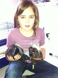 mein Name ist Alina und ich habe vor knapp einem Jahr von euch die Meerschweinchen Elvis & Caramel (ehemals Priscilla) erhalten. Die beiden leben in meinem Zimmer und wenn es warm ist, gehen beide in unseren Garten. Priscilla haben wir unbenannt in Caramel, weil ich den Namen nicht aussprechen konnte. Elvis ist bei mir ein kleiner Hoppel, d.h. er springt gerne über alle möglichen Sachen. Caramel ist zutraulicher, jedoch eine faule Socke, sie bewegt sich ungerne, und frisst dem Elvis alles weg > wahrscheinlich ist sie deshalb auch viel größer und schwerer als er.