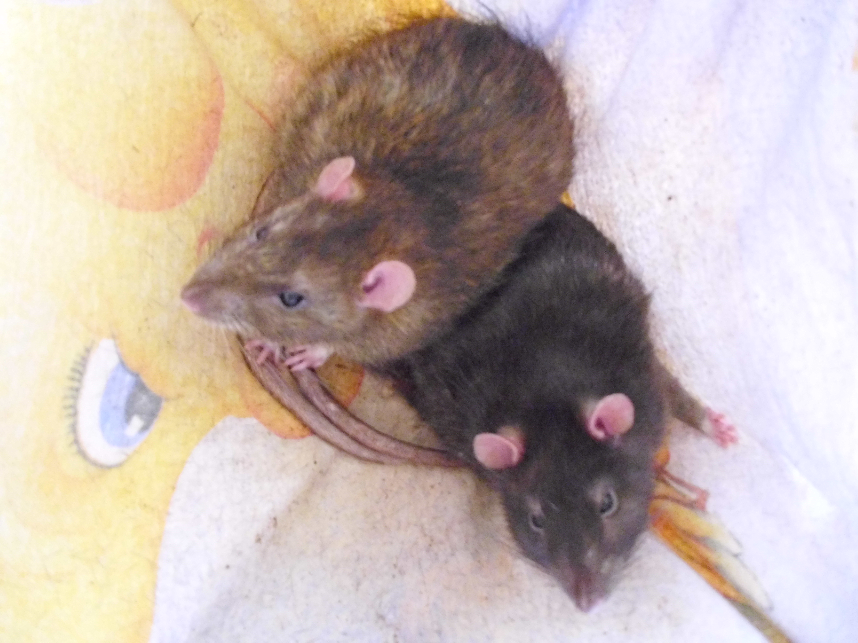 vor drei Monaten sind die beiden Ratten Janosch und Mikesch bei mir eingezogen. Sie haben ihre Namen zwar beibehalten, meistens nenne ich sie jedoch meine zwei "Kuschi-Buschi-Tiere". Besonders niedlich ist, wenn sie gähnen, sich schütteln, streiten und drei Minuten später wieder kuscheln.
