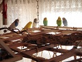 Die Schnuckels leben mittlerweile mit ihren 15 Artgenossen in einem 15 qm großen Vogelzimmer. Hier gibt es nun keine Volieren oder Käfige mehr. Dafür umso mehr Flug- und auch Spielmöglichkeiten.